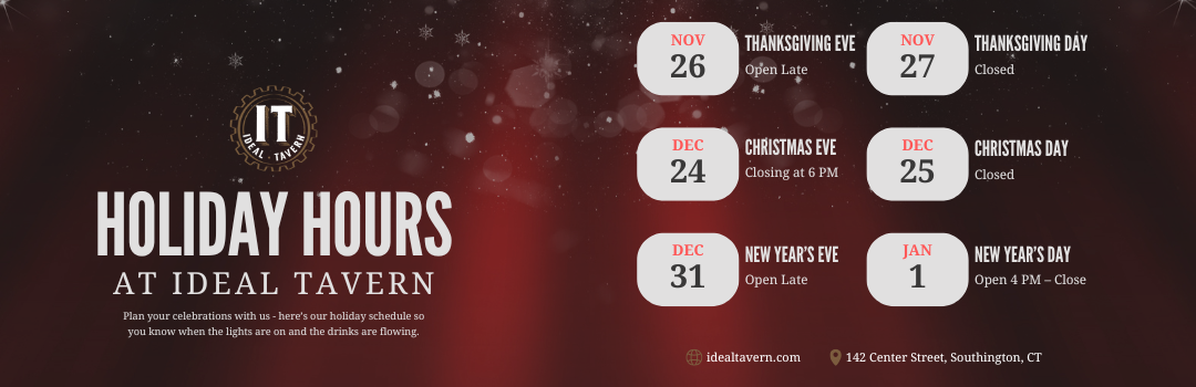 Ideal Tavern, convenient to Central Connecticut, is a gastronomic refuge that offers elevated versions of classic comfort foods in a casually modern, sophisticated, and rustic setting.